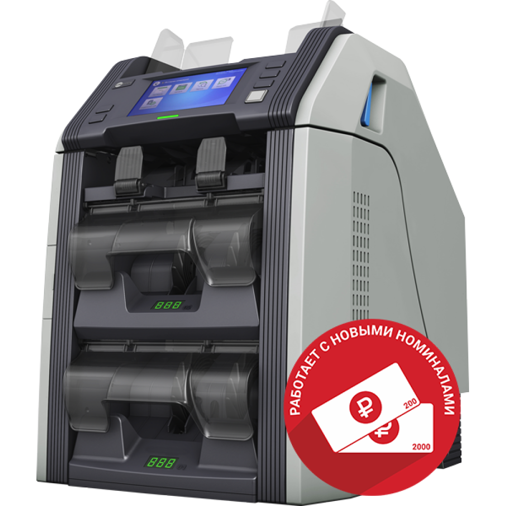 - Работает с номиналами 200 и 2000 рублей