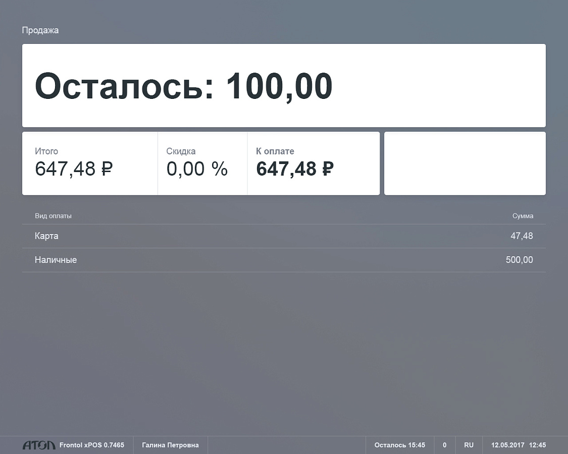 - Интерфейс Frontol xPOS 3 оснащен функцией работы с сенсорным экраном и поддержкой планшетов на базе ОС Windows 10.